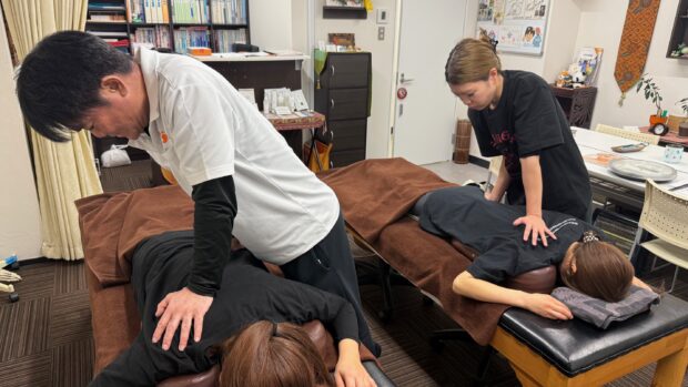 実技と理論を上手く交互に織り交ぜて、合間にはツボも学んで行きます😉