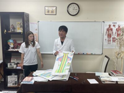 その場で校長が筋肉や経絡を書きながらの授業にて、学ぶことができます。
