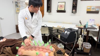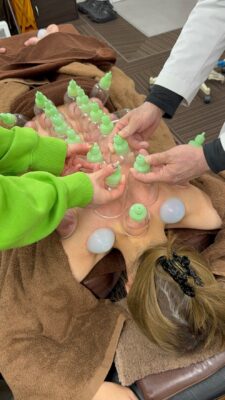 生徒様にはまず吸玉の良さを体験、体感していただきました。