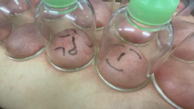 火とアルコールを使用し真空状態にしてガラス玉を患部に吸い付ける方法【ばっかん】も見て頂けます。