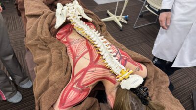 午前中は頭部からデコルテまでの骨と筋の位置や働きをしっかりと学びます。